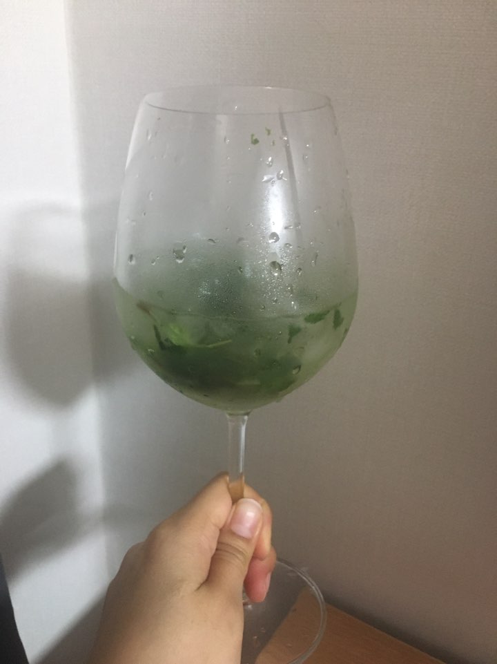 놀랍게도 모히또이다. 내부가 더 잘 보이는 사진으로 하면 좋았겠으나 만든 자의 미숙으로 자연 그대로의 풀떼기를 뜯어놓은 듯한 모양새라 차마 그럴 수 없었다. 어쨌든 맛이 좋았다. 탄산수, 애플민트, 서울의 밤(+얼음) 밖에 들어가지 않았는데도 제법 모히또의 맛이 났다. 서울의 밤은 매실주이지만 이렇듯 (야매)칵테일 만들어 먹기 괜찮은 듯 하다.