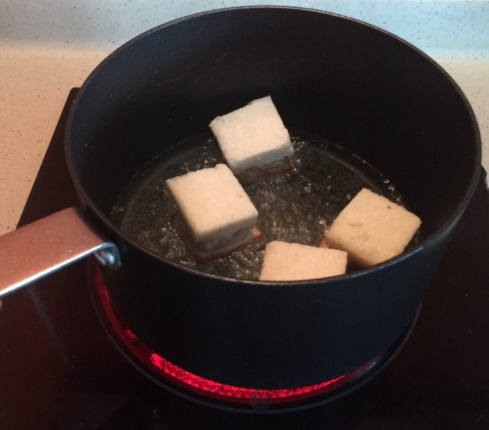 어제 가지튀김을 하고 남은 기름을 털어넣고 튀기는데 얘네가 도톰해서 그런지 밑면만 익는 느낌이다. 그래서 냄비를 기울여 튀겨줬다. 근데 자신이 앞면, 뒷면, 옆면을 골고루 뒤집어가며 익힌다면 프라이팬에 달걀익히듯이 해도 될 듯 하다.