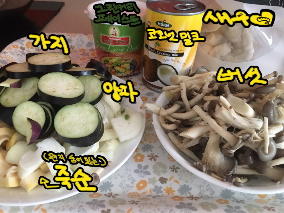 마지막으로 그린 커리 페이스트와 코코넛밀크까지 췍!