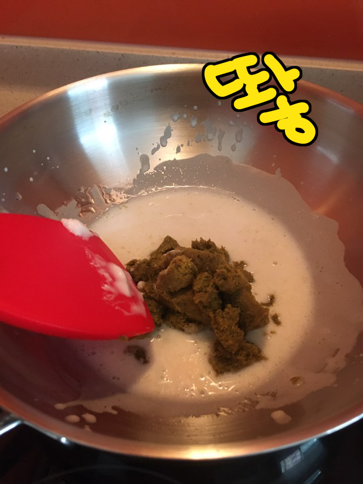 코코넛 밀크 약간에 그린 페이스트를 풀어준 뒤