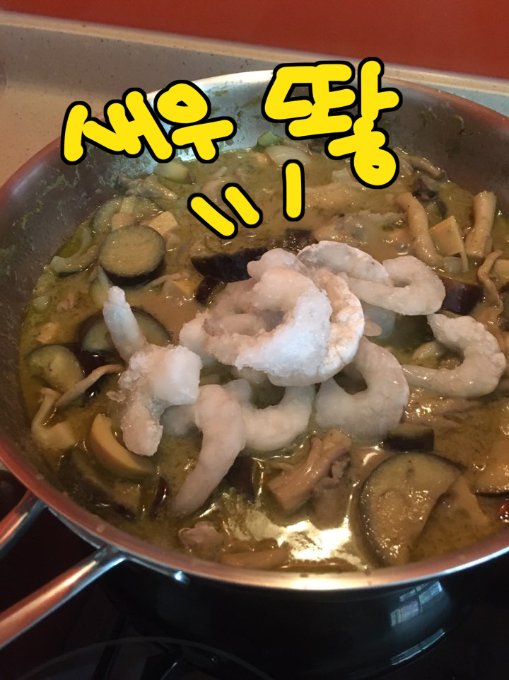 (새우를 제외한) 야채와 나머지 코코넛 밀크 한캔 전부 넣고