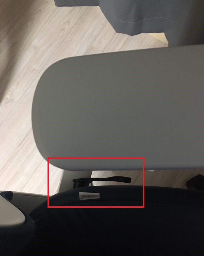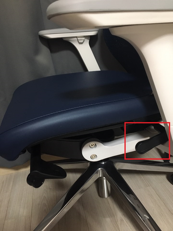 사용법은 내가 앉았을떄 기준으로, 좌판 왼쪽 뒤에 있는 레버를 당기는 것. (끝까지 당겨야 한다. 중간에 멈춰지지 않음)
