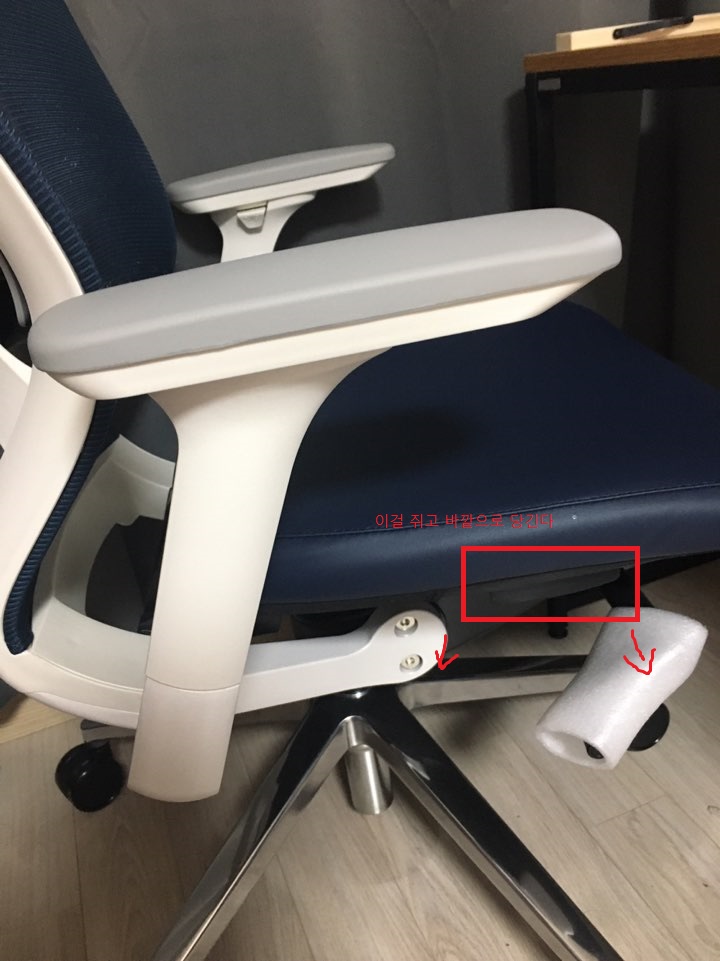 손잡이 올리는 방법이야 다른 의자들과 비슷하다.