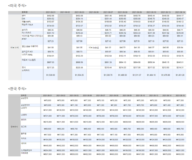 | Day23_오늘의 부자 일지: 오늘의 주가, 내가 시간과 돈을 쓰는 곳 (0) | 2021.09.15 |